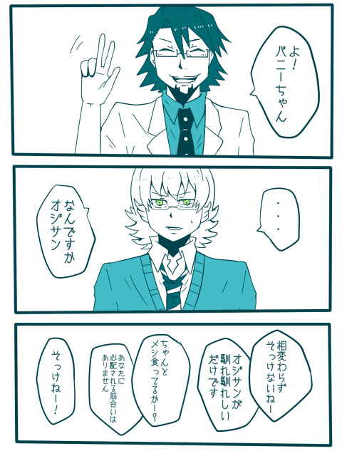 学生バニーちゃんと保険医オジサンのお話。友人が保険医オジサン描いていたんですが、終始メガネはぁはぁ状態でした(^q^)